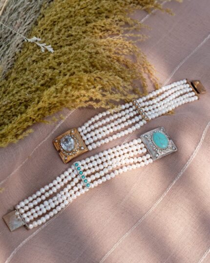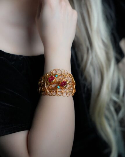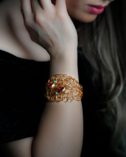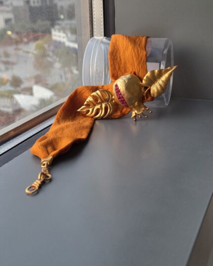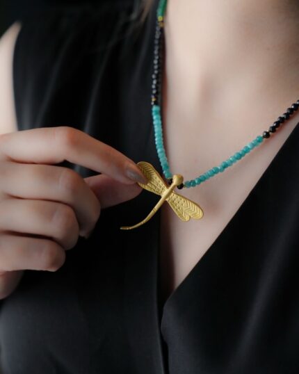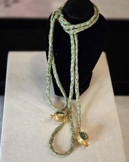 Each piece is handmade using noble materials such as silk, gold-plated bronze, and semi-precious stones. Every piece tells a story-a connection between East and West.