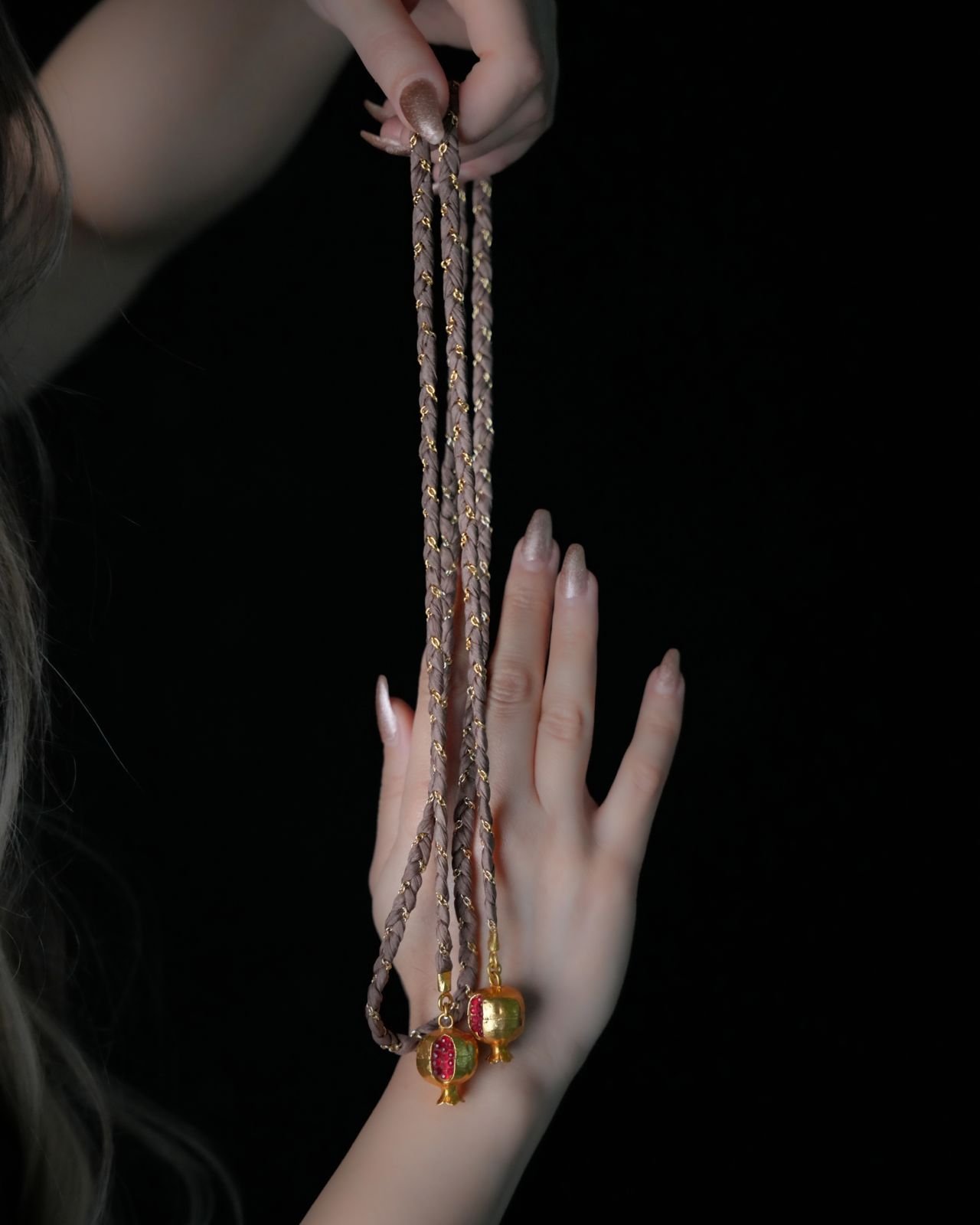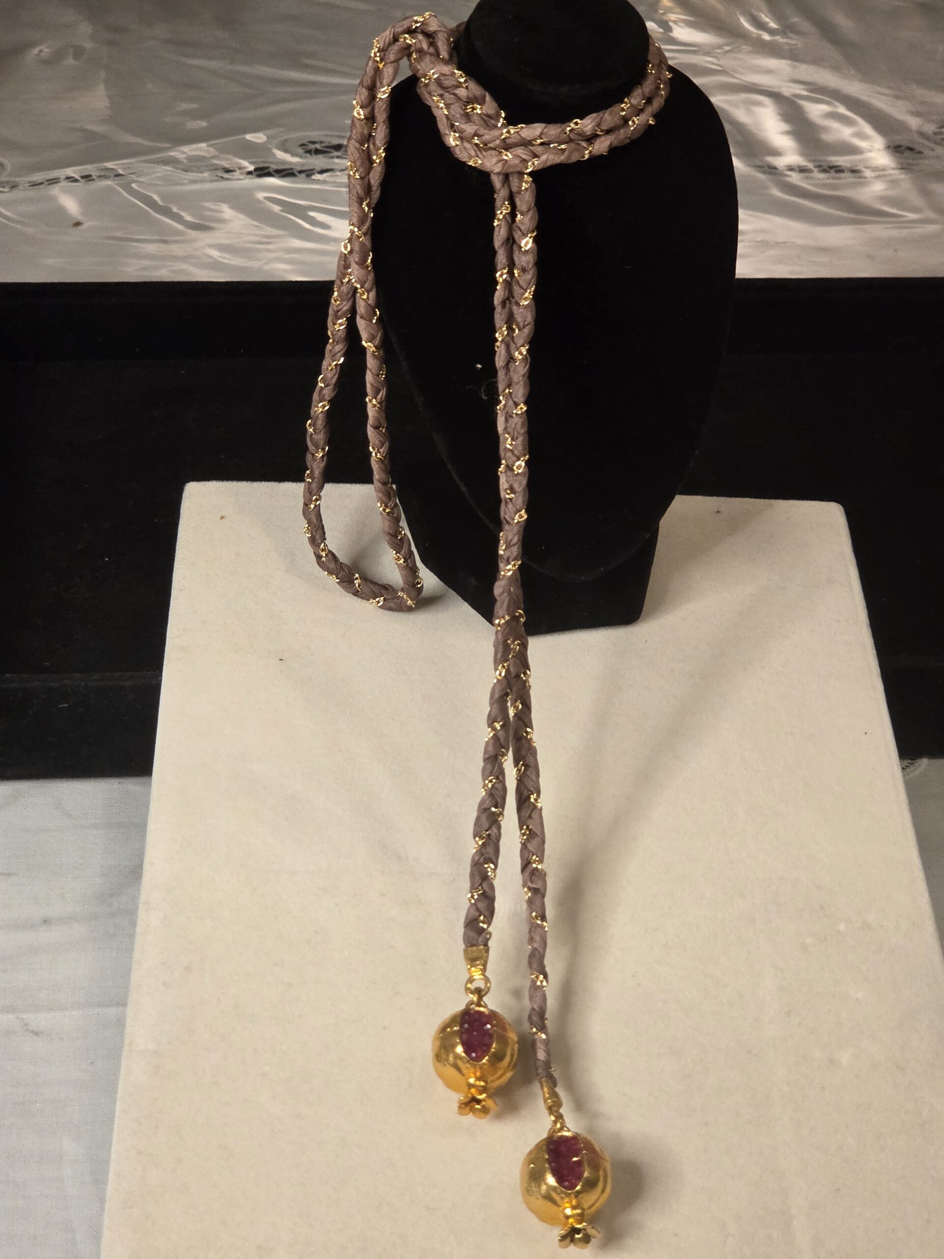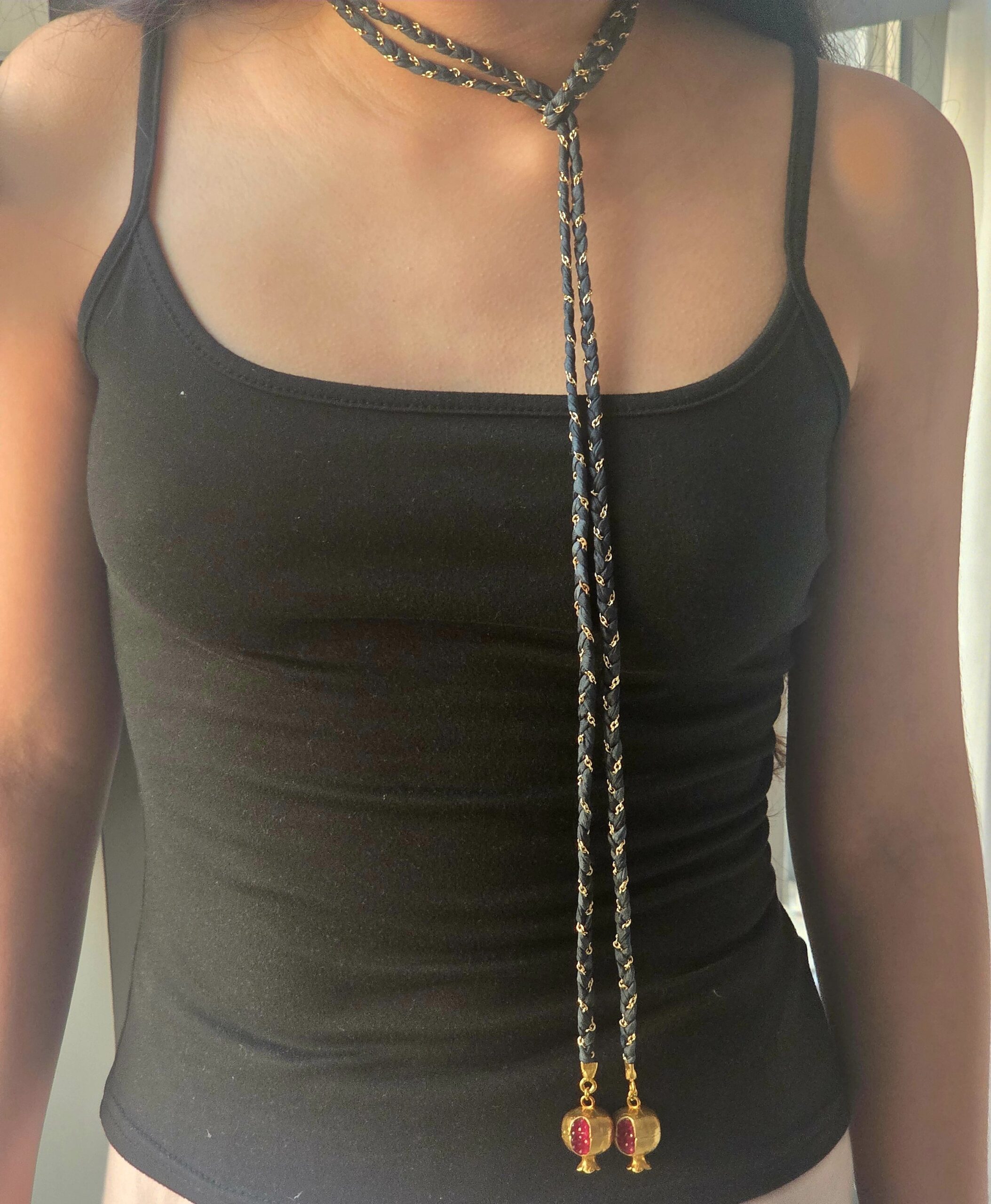 Braided silk necklace with gold plating 18k and agate stone, handmade and versatile as a belt.Available in three colors