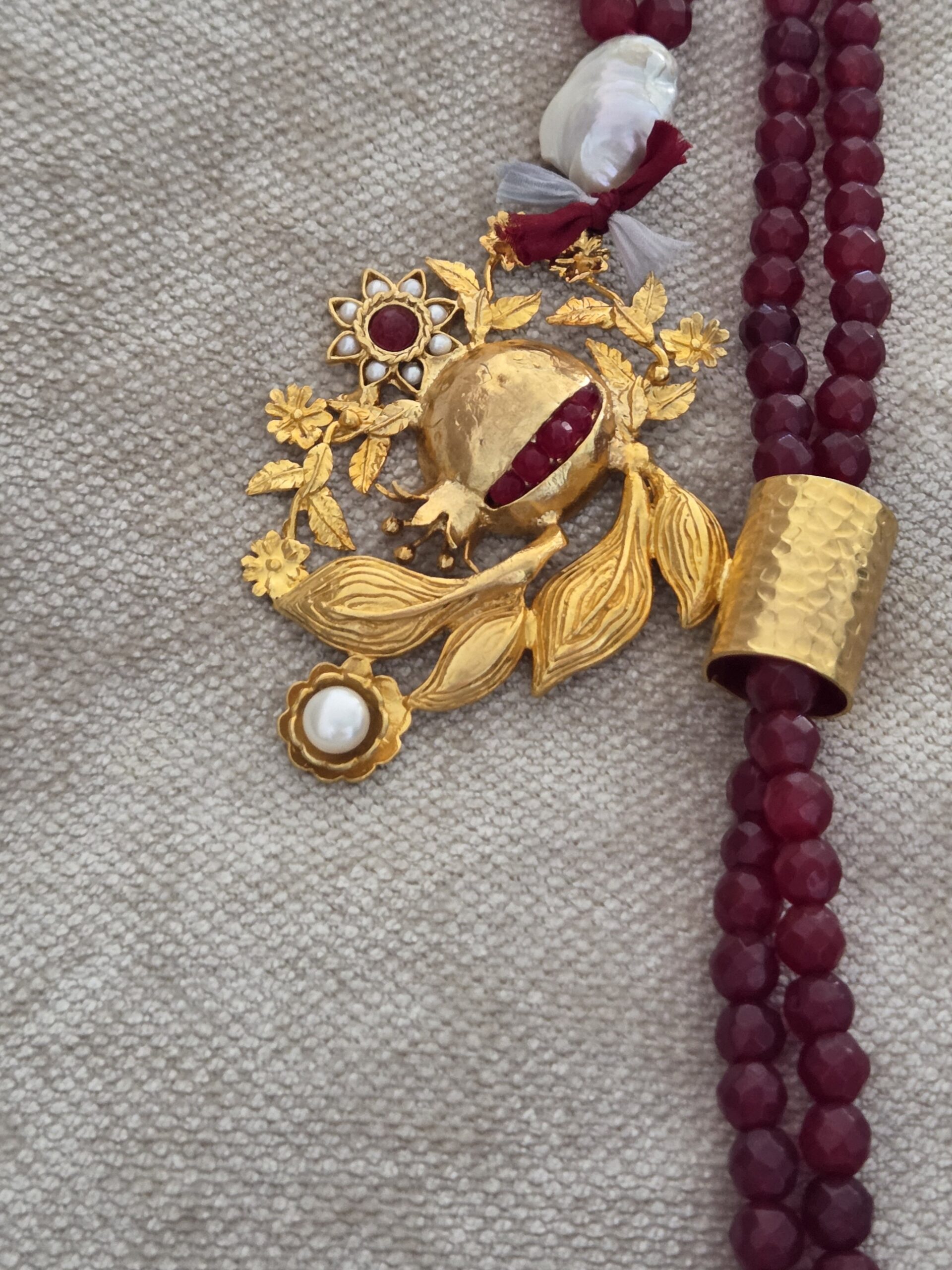 Luxury 18k gold-plated peral hand made tie necklace with agate stone