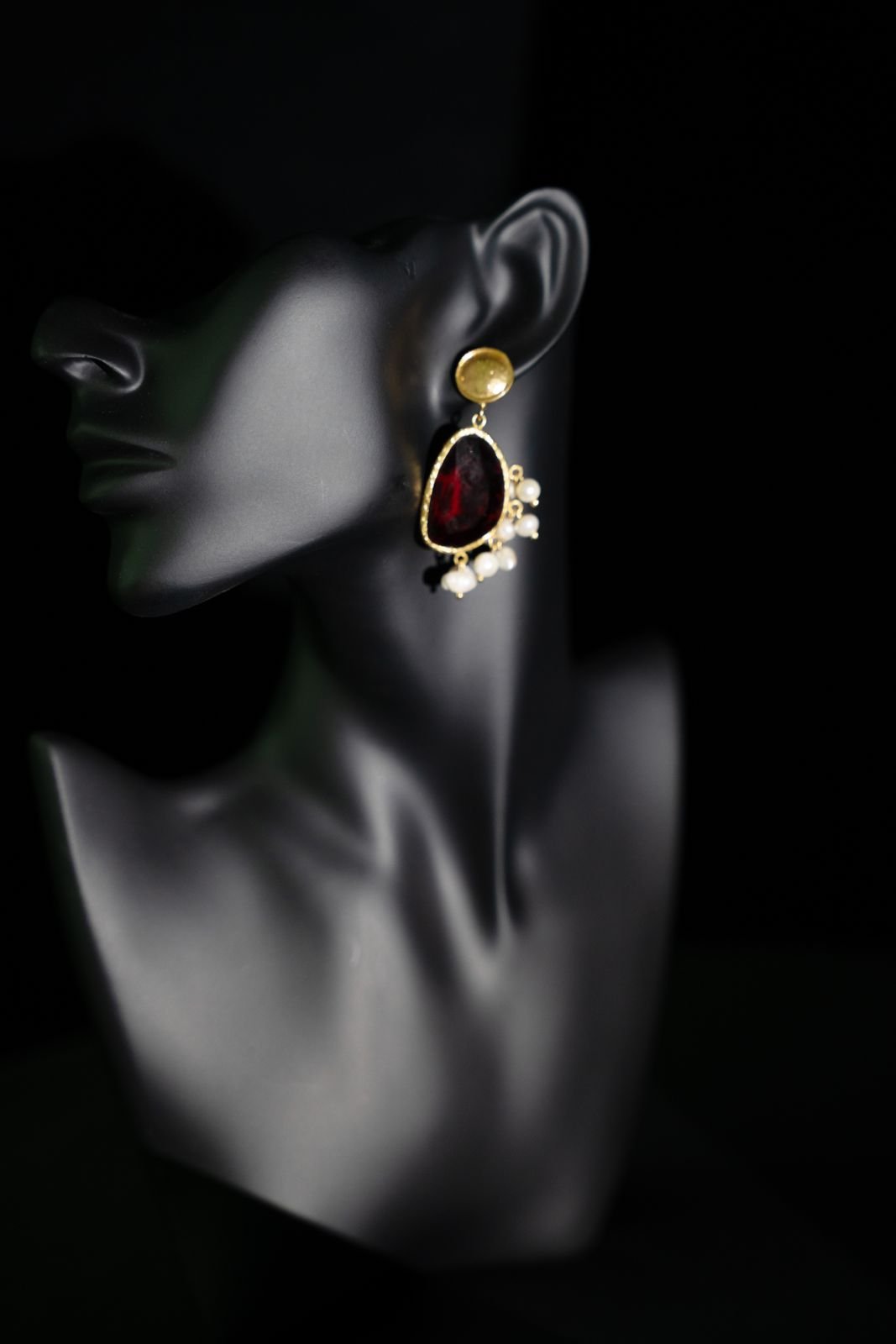 Earring in glass and bronze with perles a truly original design.Handmade with care, each pair is a one-of-a-kind creation